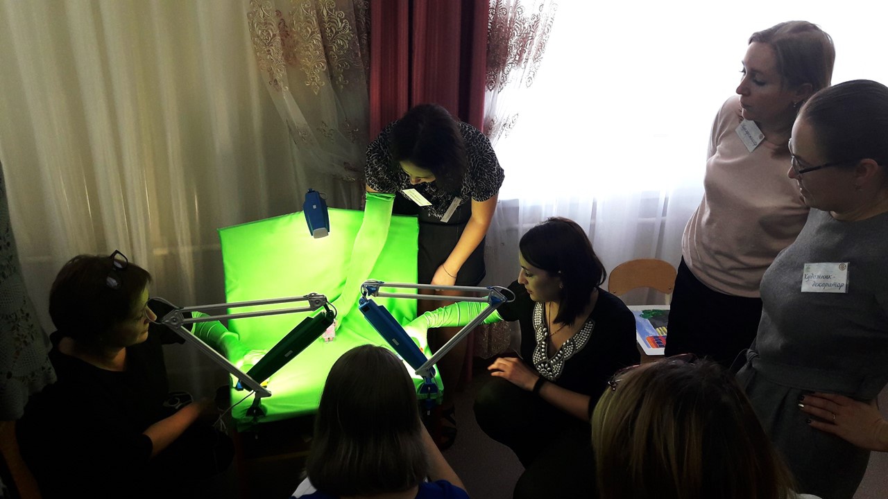 В практической части мероприятия педагогов ждал увлекательный мастер-класс, на котором три мини-мультстудии, распределив между собой профессии: мультипликатор, сценарист, художник-декоратор, оператор видеосъемки, отправились по всем этап создания мультфильма. Используя технологию 3D-моделирования при помощи 3D-ручки, педагоги из плоскостных фигур смоделировали трехмерную модель, которая стала главным героем мультфильма. Художник-декоратор за это время подготовил фон и декорации. Дело дошло до самого главного процесса – видеосъемка, здесь фантазия и трудолюбие, необходимые помощники тех, кто решил освоить такое непростое дело, как мультипликация. В технике «анимация на зеленом фоне», под руководством ассистентов мультстудий, каждая команда, замерев, почти не дыша, плотно сомкнувшись кольцом вокруг своего проводника в мир мультипликации, создавала свой мир оживающих героев и постигала секреты рождения движения на экране! Озвучивание проходило в студии звукозаписи,так как этот процесс требует абсолютной тишины. И вот, волнительный момент! Первыми зрителями собственного творения стали сами педагоги и продюсер «Мультфестиваля-2018», в лице Ковалевой Ольги Григорьевны, председателя профсоюзного комитета МАДОУ «Радость». После просмотра, Ольга Григорьевна, присвоила каждой мультстудии свою номинацию и вручила «Оскар» за креативность и творческий подход каждой команде.