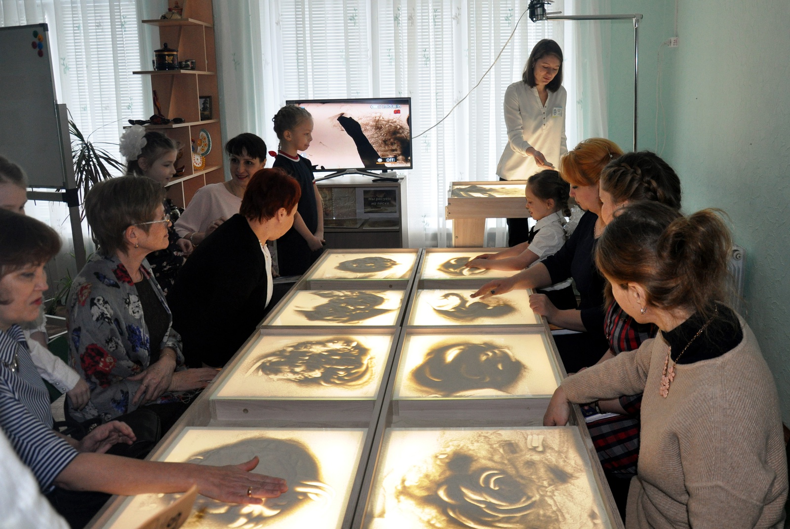На площадке художественного творчества дети провели для гостей экскурсию по творческой мастерской. Рассказали о своей мультстудии и пригласили гостей попробовать себя в роли художников песочной анимации. Практикум провела педагог Епишина Анастасия Евгеньевна.