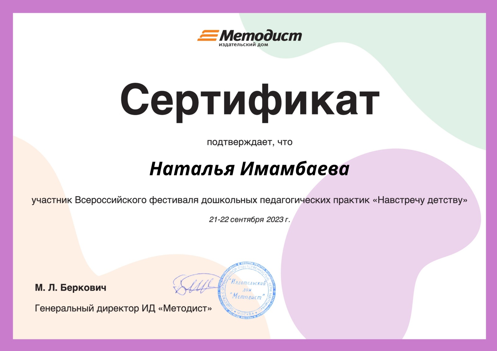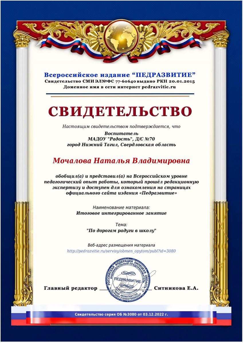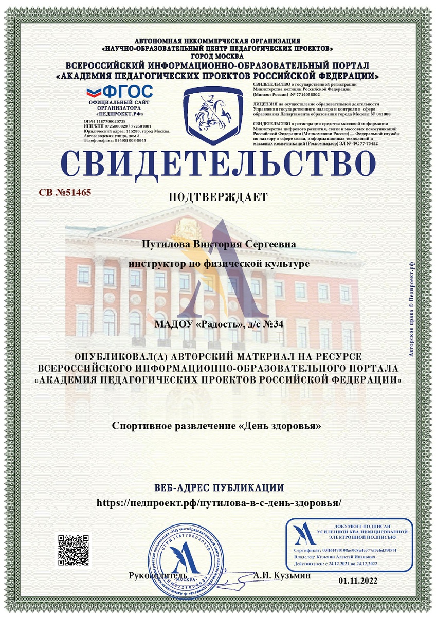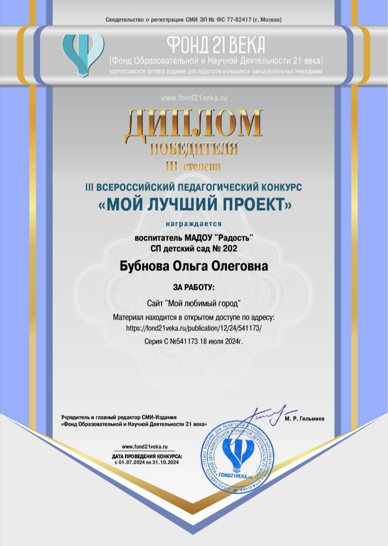 - Инновационные площадки федерального уровня АНО ДПО «НИИ дошкольного образования «Воспитатели России»