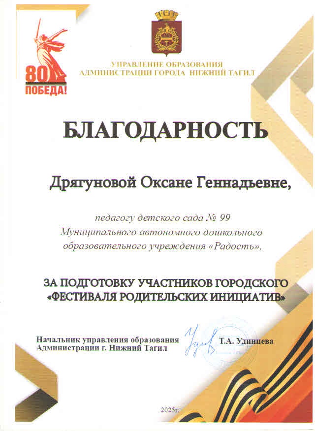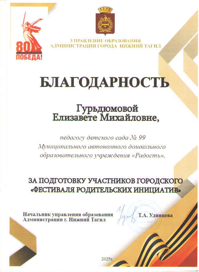 - I место в фестивале «Готов к труду и обороне» детского сада № 208