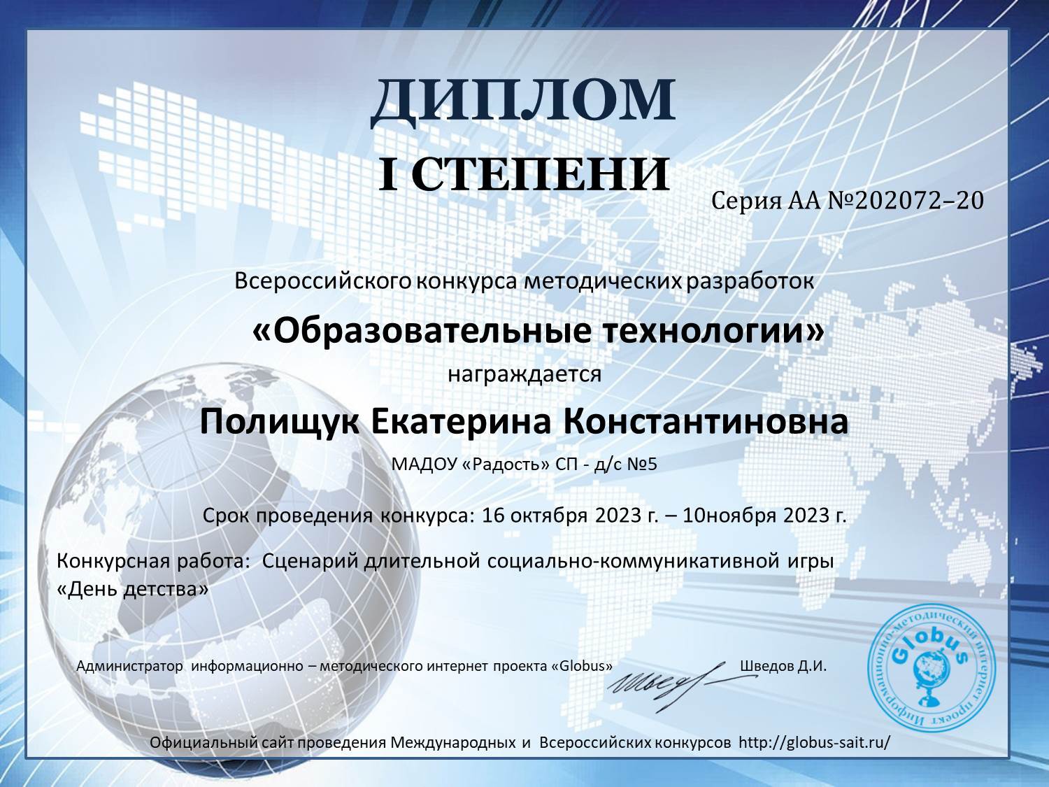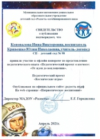 - Лучший опыт «Педагогический проект о космосе: от идеи до воплощения»